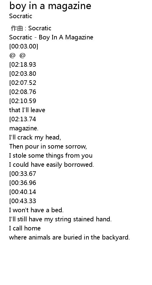 | [00:02.00] | Socratic - Boy In A Magazine |