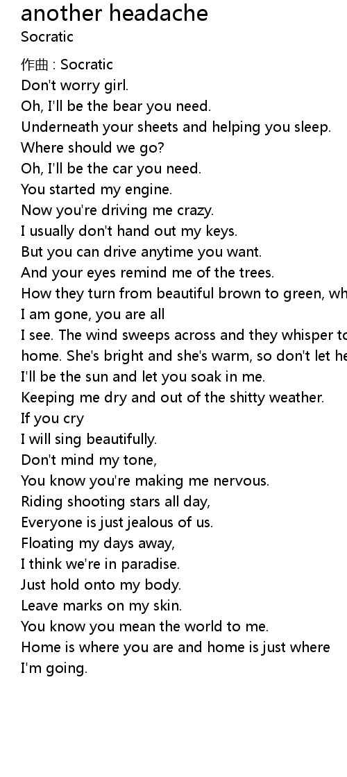 | Song | another headache |