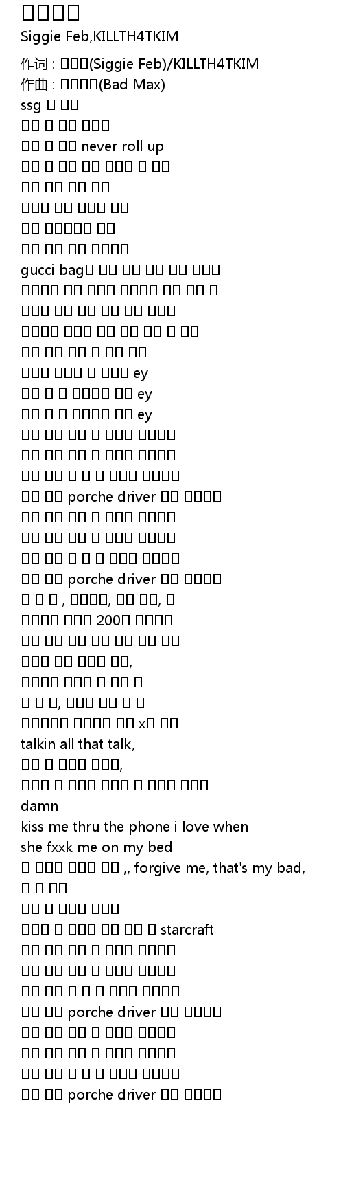 作词 : 시기펩(Siggie Feb)/KILLTH4TKIM |
