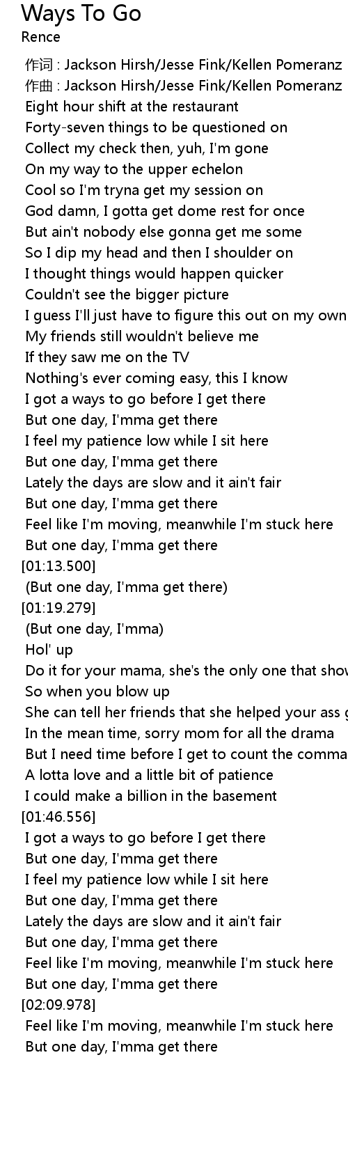 | [00:10.695] | Collect my check then, yuh, I' m gone |
