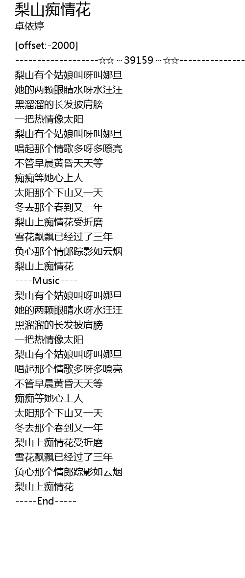 | [00:37.91] | 梨山有个姑娘叫呀叫娜旦 |