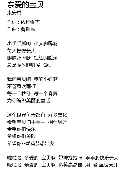 | 啦啦啦 亲爱的 宝贝啊 微笑高高挂 用 爱 温暖天涯 |