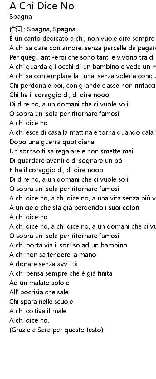 | È un canto dedicato a chi, non vuole dire sempre sì | |