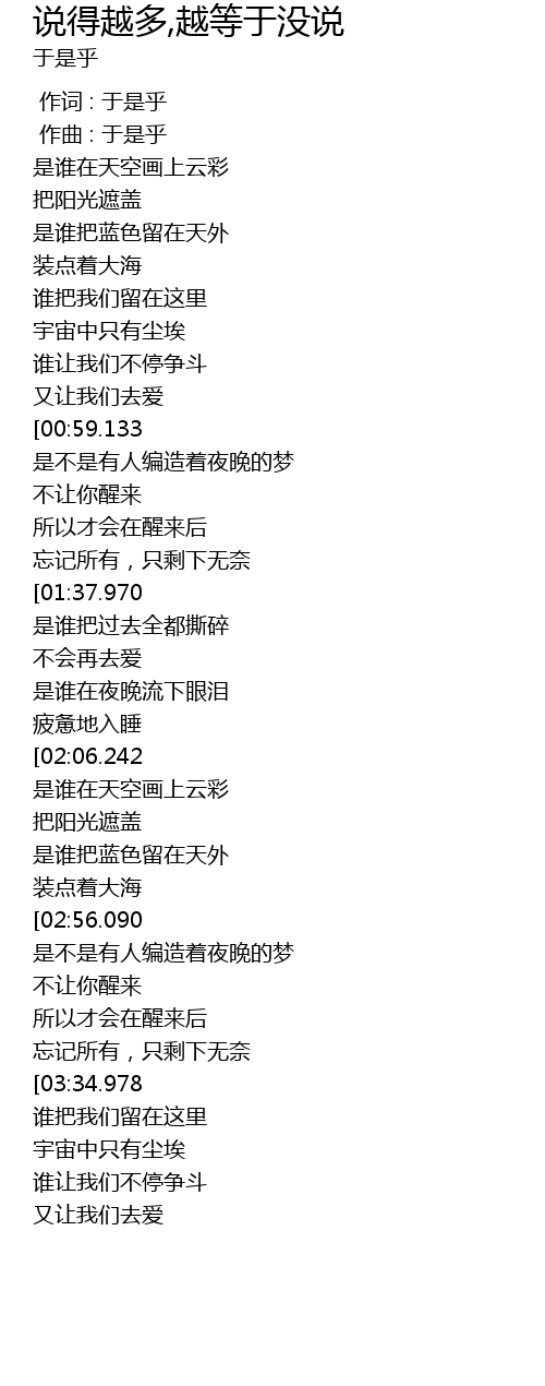 | [00:59.933] | 是不是有人编造着夜晚的梦 |
