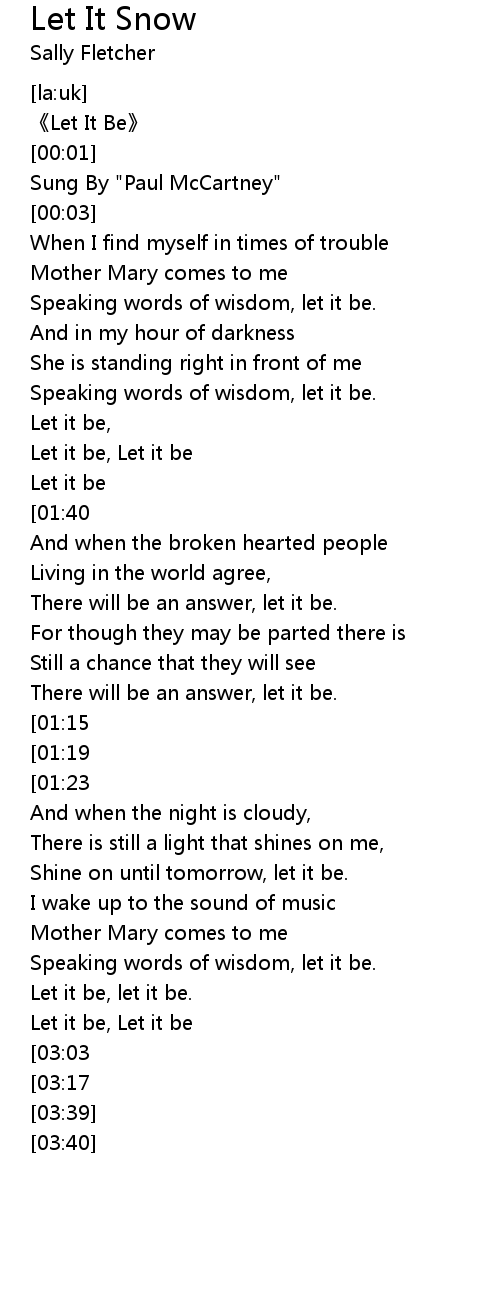 | [02:13][01:15] | Let it be, let it be. |