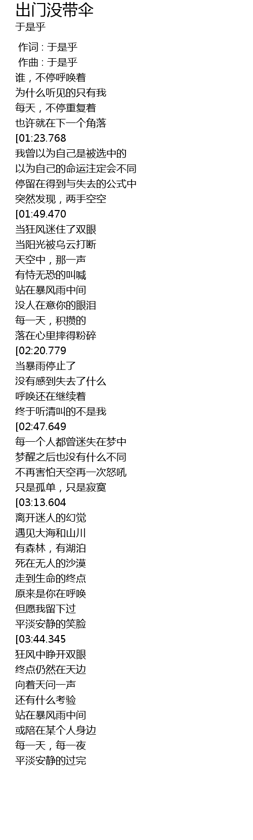 | [02:03.192] | yǒu shì wú kǒng de jiào hǎn |