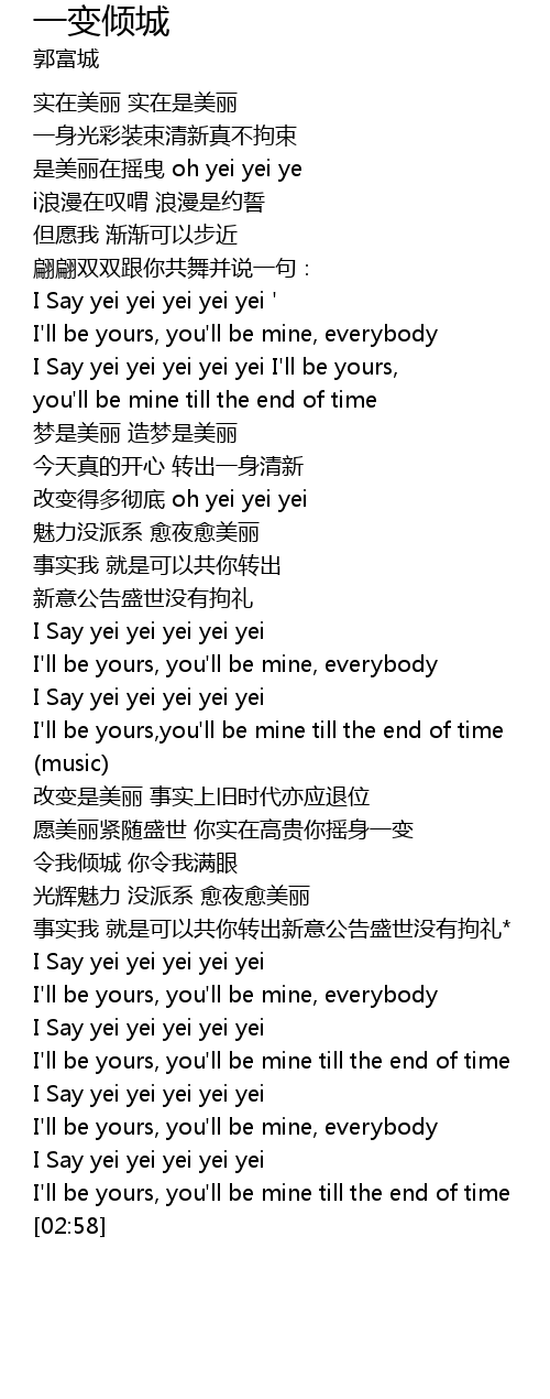 | [01:48] | I' ll be yours, you' ll be mine till the end of time |
