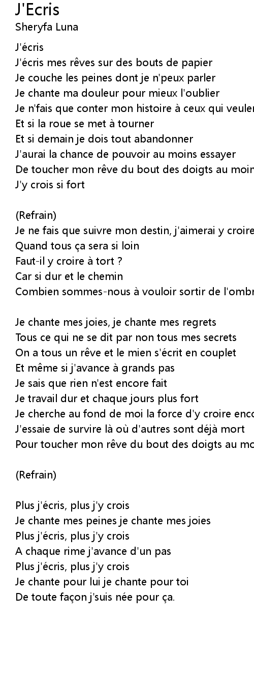 | On a tous un rêve et le mien s'écrit en couplet | |