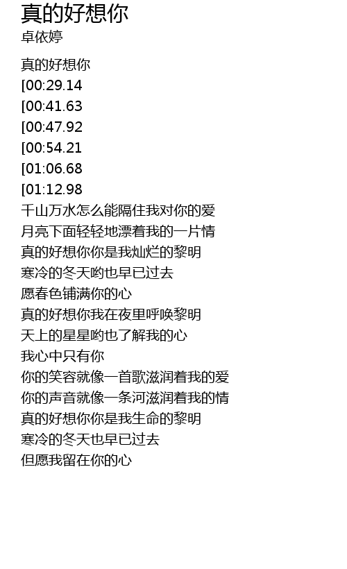 | [00:00.00] | zhēn de hǎo xiǎng nǐ |