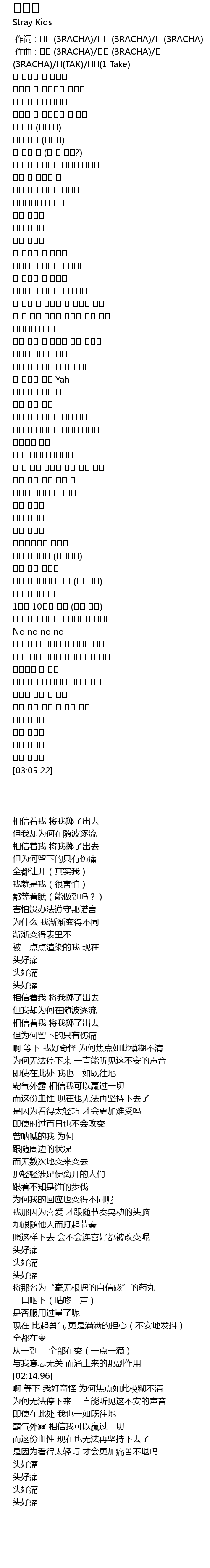 | [00:00.000] | 作词 : 방찬 (3RACHA)/창빈 (3RACHA)/한 (3RACHA) |