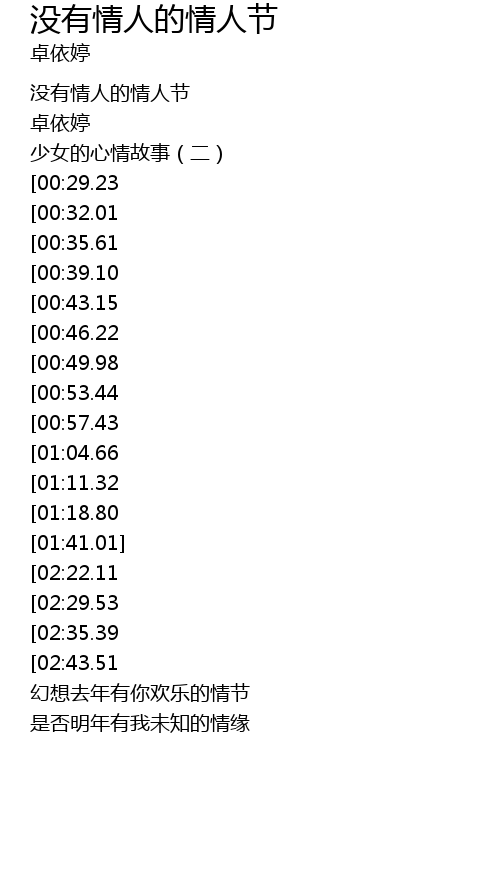 | [02:07.56][00:43.15] | 没有情人的情人节 |