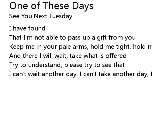 | Song | One of These Days |