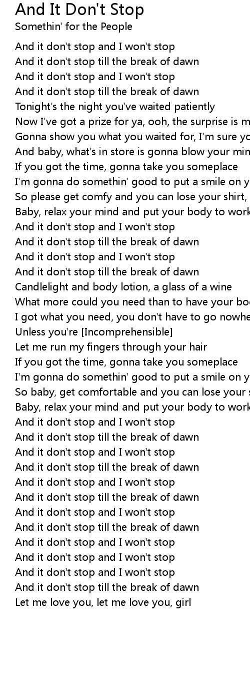 And it don't stop and I won't stop |