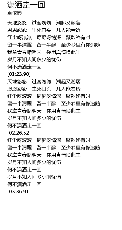 | [03:24.21] | hé bù xiāo sǎ zǒu yī huí |