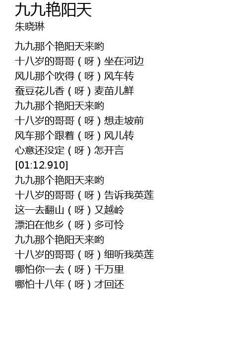| [01:36.230] | 九九那个艳阳天来哟 |