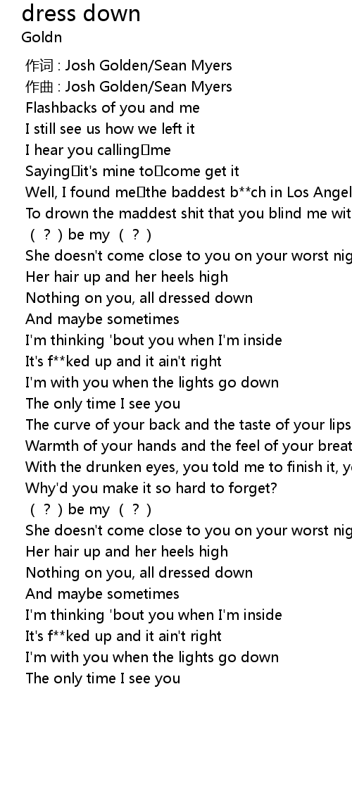 | Song | dress down |