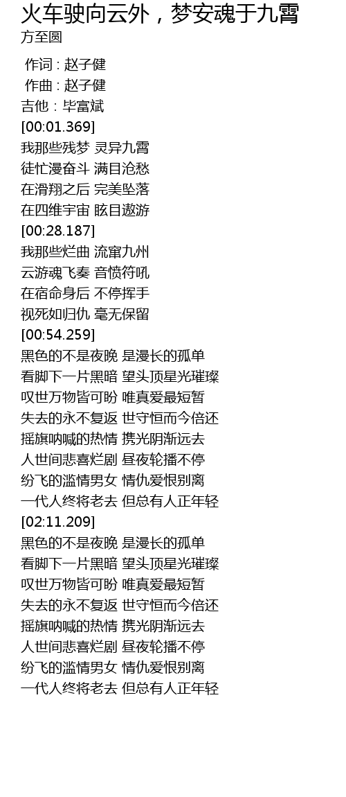 | Song | 火车驶向云外,梦安魂于九霄 |