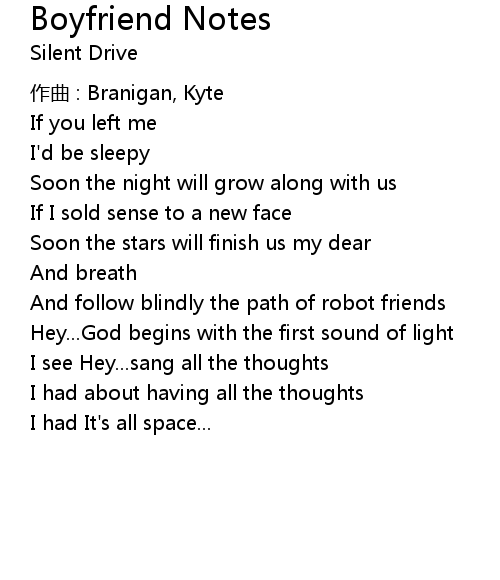 | Song | Boyfriend Notes |