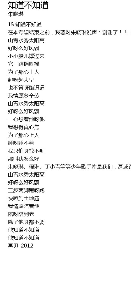 | [00:09.08] | 15. zhi dao bu zhi dao |