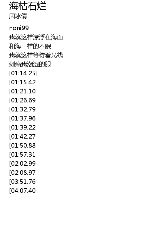 | [03:18.99][01:42.27] | 是我深深眷恋的海 |
