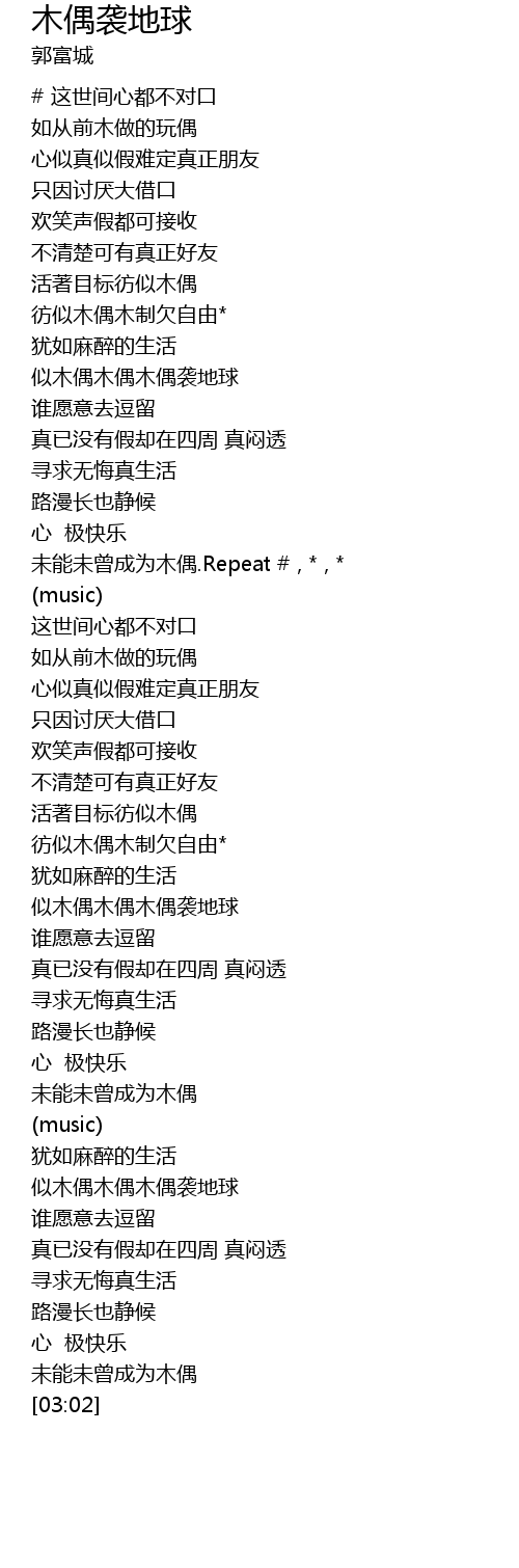 | [01:04] | 未能未曾成为木偶.Repeat # , * , * |