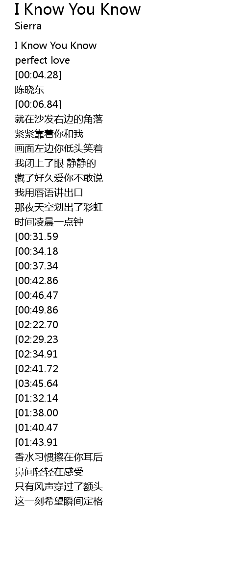 | [03:12.57][02:34.91][01:07.65] | I Know You Know |
