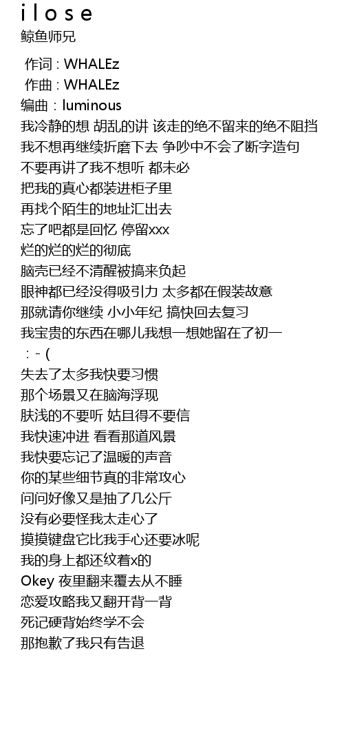 | [00:42.930] | 我不想再继续折磨下去 争吵中不会了断字造句 |
