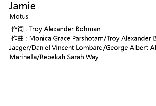 | [00:00.00-1] | 作曲 : Monica Grace Parshotam/Troy Alexander Bohman/Samuel James Jaeger/Daniel Vincent Lombard/George Albert Allison/Jeanie Marie Marinella/Rebekah Sarah Way |