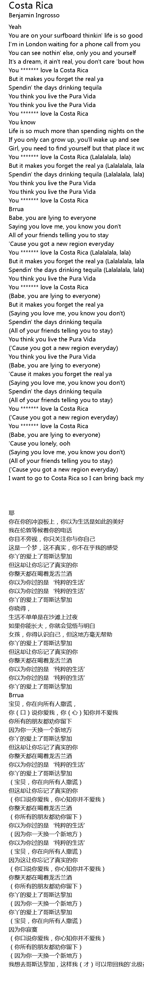 | [01:52.96] | You ******* love la Costa Rica (Lalalalala, lala) |
