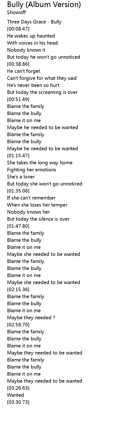 | [03:16.25] | Blame the bully |