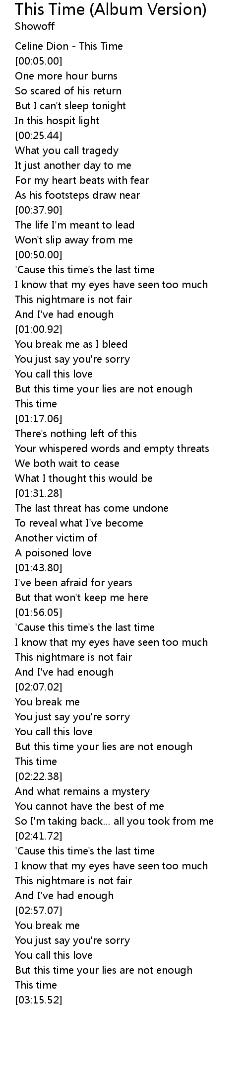 | [00:02.00] | Celine Dion - This Time |