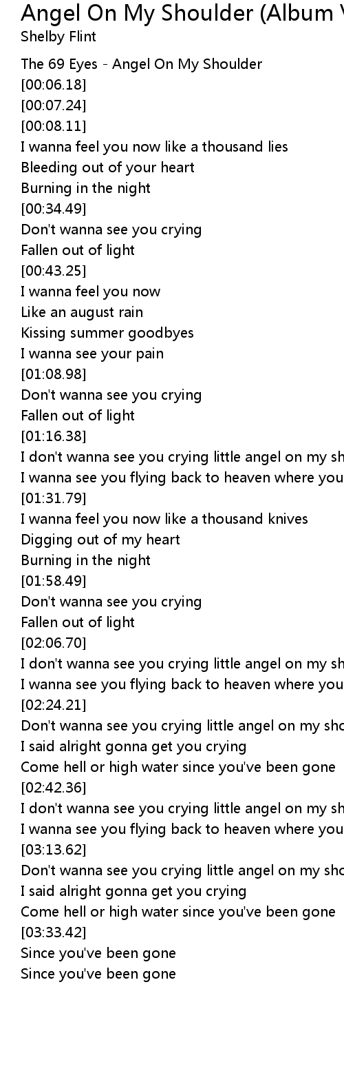 Don't wanna see you crying little angel on my shoulder |