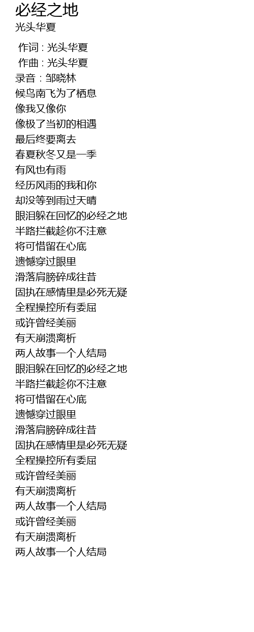| [00:00.000] | 作词 : 光头华夏 |