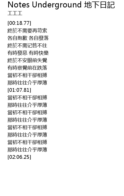 | Song | Notes Underground 地下日記 |