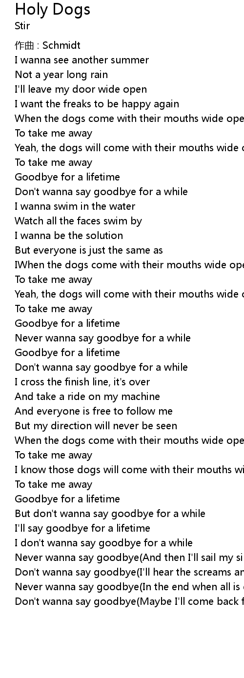 | Don' t wanna say goodbye I' ll hear the screams and feel the waves from everyone | |