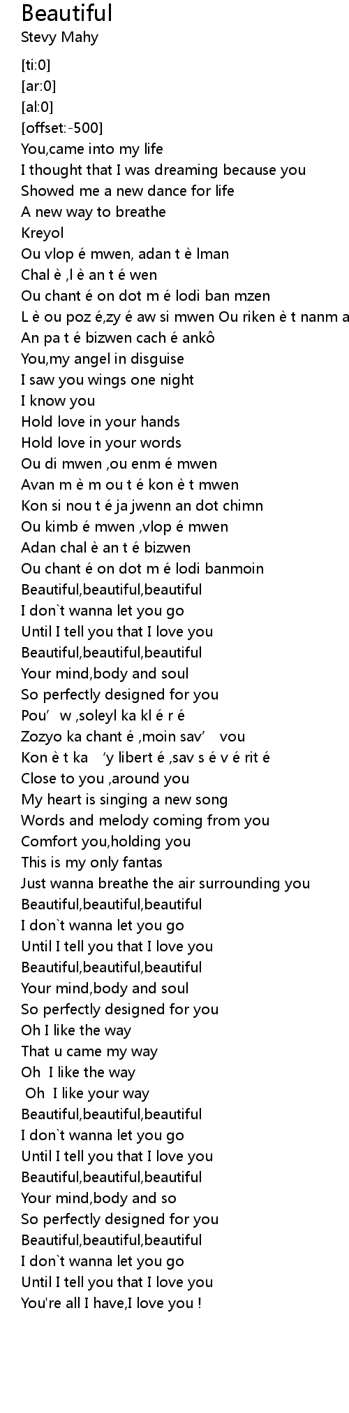 | [01:32.89] | Beautiful, beautiful, beautiful |