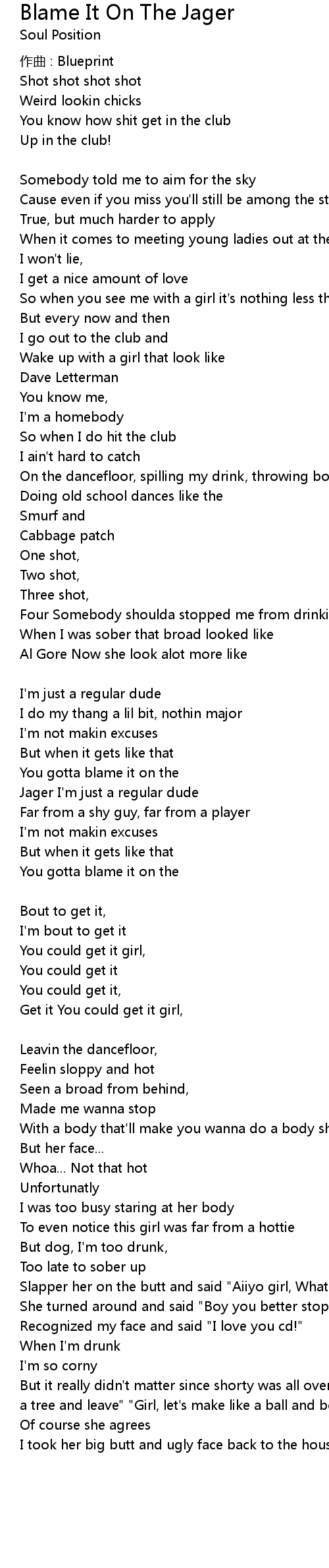 | Song | Blame It On The Jager |
