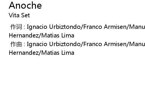 | [00:00.00-1] | 作词 : Ignacio Urbiztondo/Franco Armisen/Manuel Alvarez/Santiago Hernandez/Matias Lima |