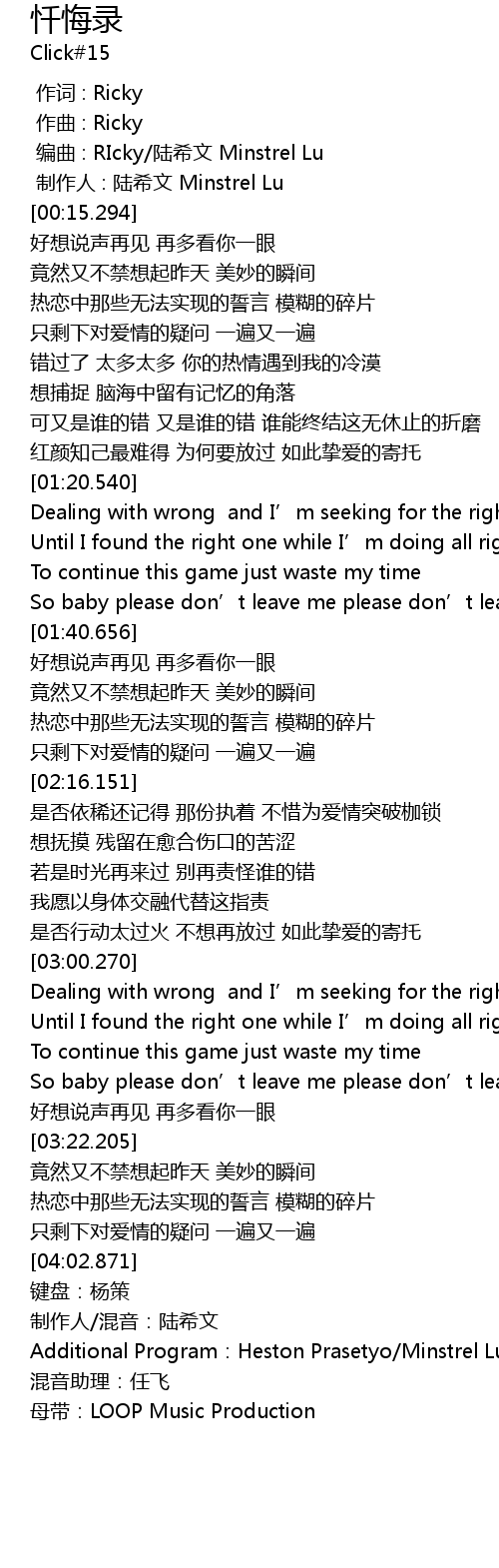 | [00:02.000] | bian qu : RIcky lu xi wen Minstrel Lu |