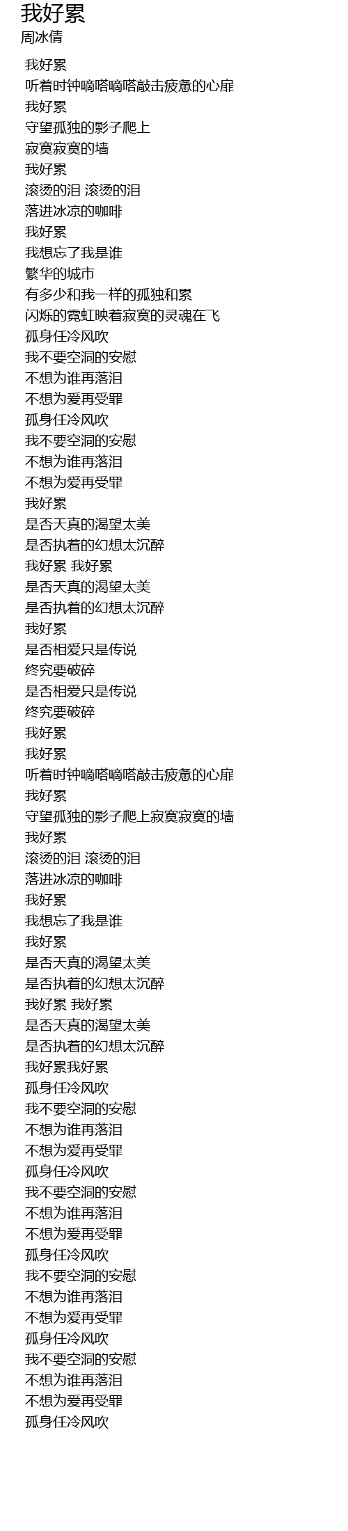 | [03:37.52] | wǒ hǎo lèi wǒ hǎo lèi |