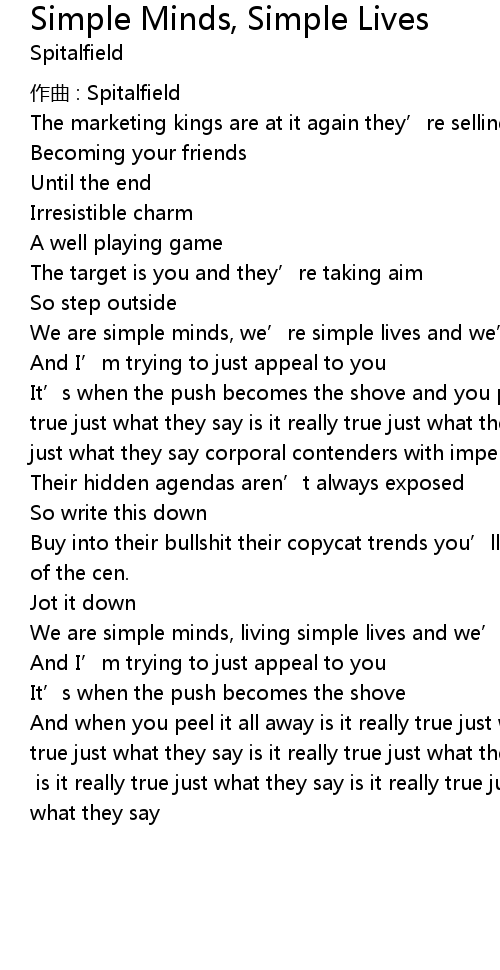 | We are simple minds, we' re simple lives and we' re doing what we love | |