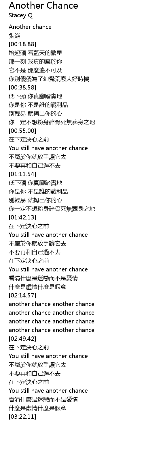 | [02:53.97] | You still have another chance |