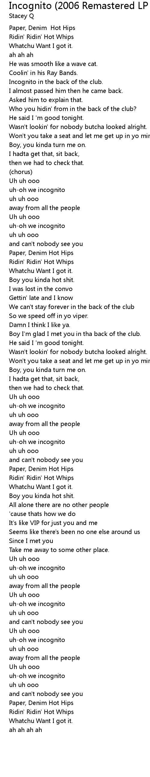 Incognito (2006 Remastered LP Version) Lyrics