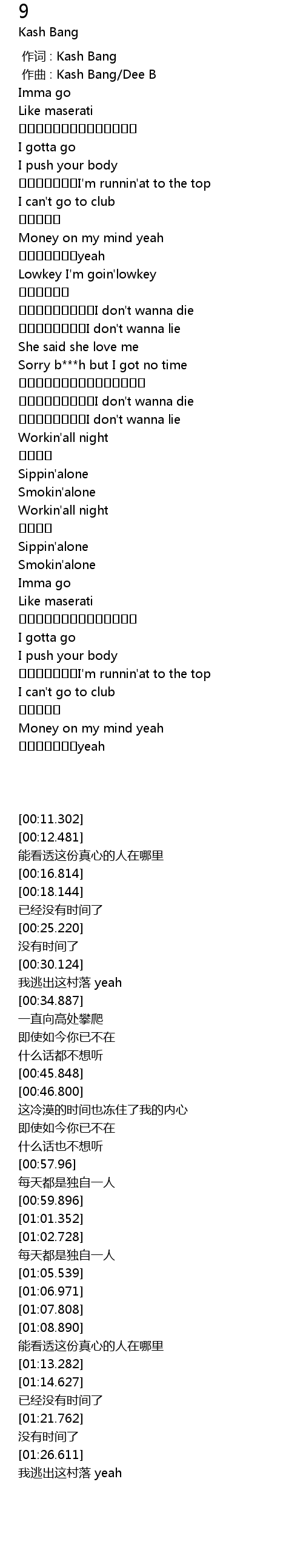 | [00:00.000] | 作词 : Kash Bang |
