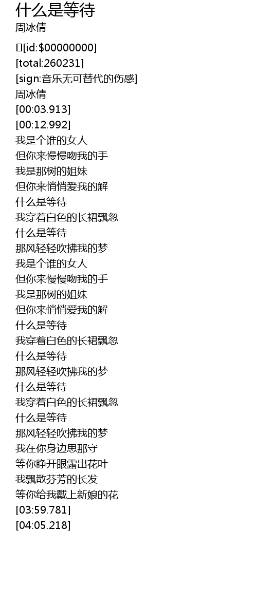 | [03:54.593] | 等你给我戴上新娘的花 |
