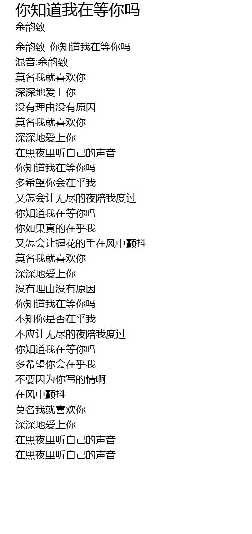 | [00:05.441] | 余韵致-你知道我在等你吗 |