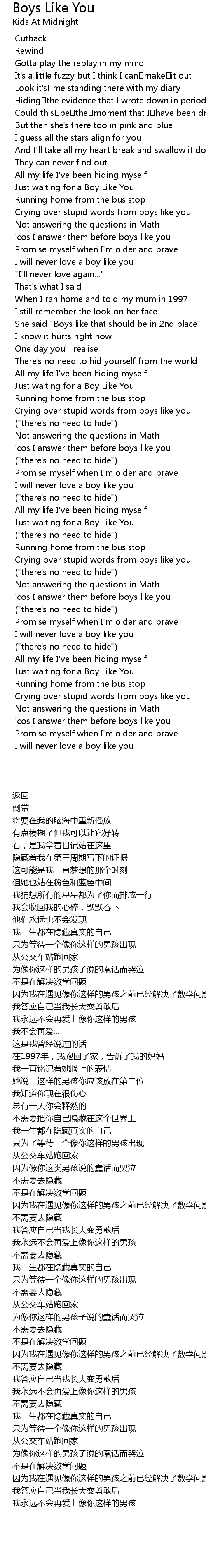 | [02:42.017] | Just waiting for a Boy Like You |