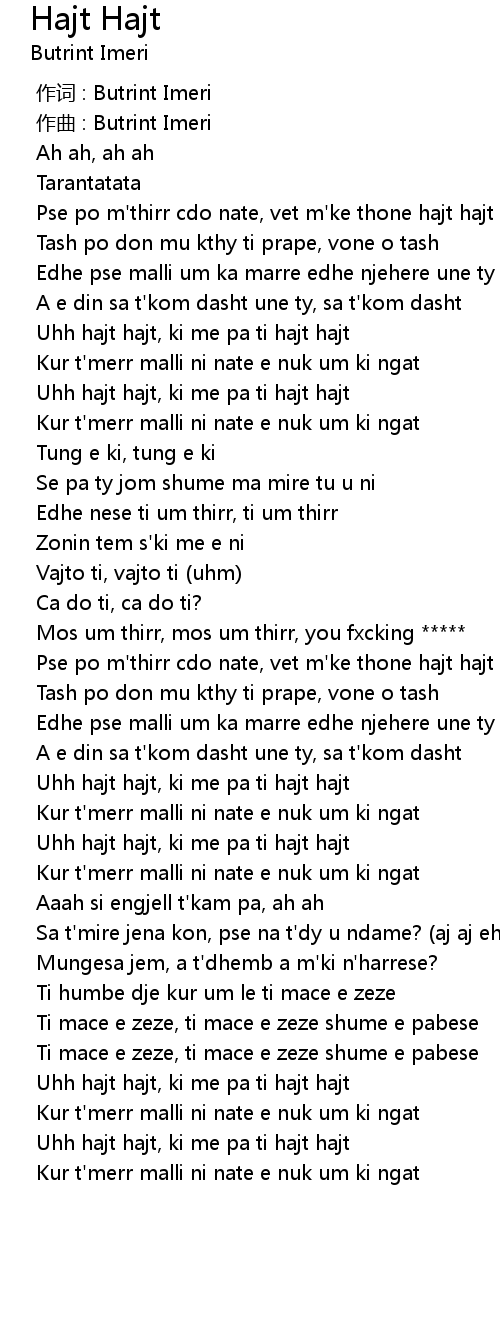 | [02:30.065] | Uhh hajt hajt, ki me pa ti hajt hajt |