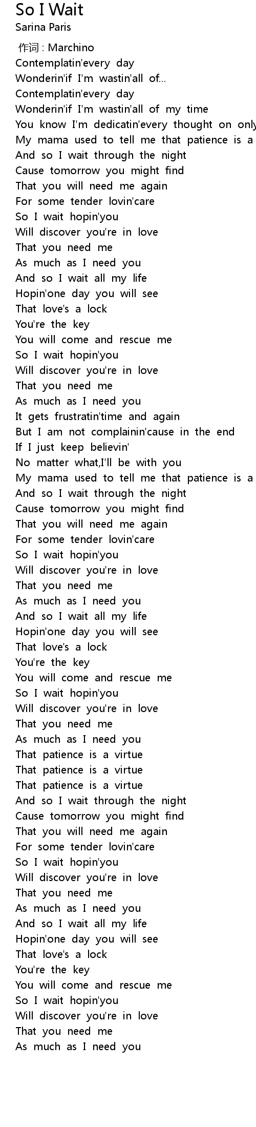 | [00:36.921] | My mama used to tell me that patience is a virtue |