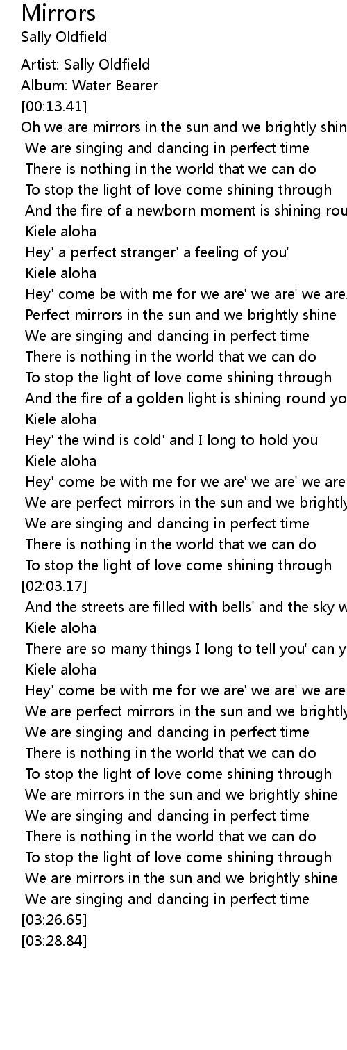 Oh we are mirrors in the sun and we brightly shine |